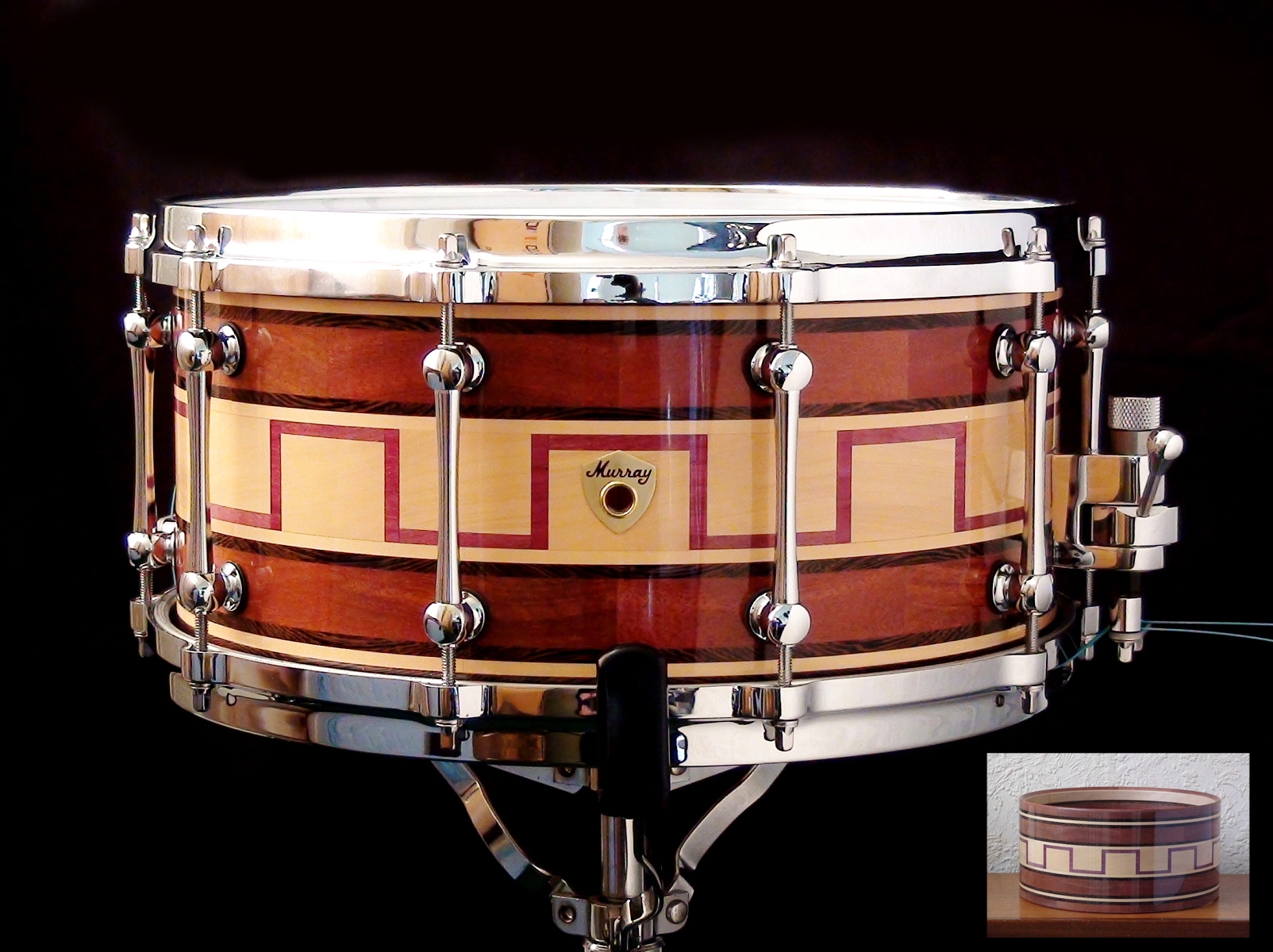 Il legno è uno dei materiali più versatili per la produzione di manufatti per la vita quotidiana dell’essere umano: strumenti musicali inclusi, tra cui i fusti per tamburo. Ma ci vuole dell’ingegno per riuscire a realizzare fusti con marcate peculiarità timbriche ed esteticamente riconoscibili. Ebbene, lo scozzese Murray, artigiano creativo ed intelligente, tali doti le ha.