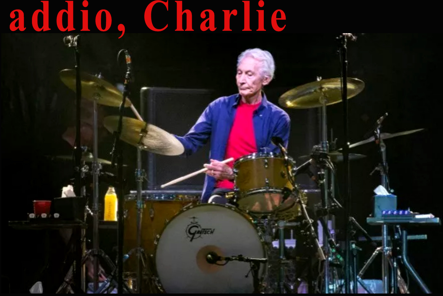 Seduto dietro alla sua autarchica Gretsch del 1957 di quattro pezzi, con il china (l’italianissimo Ufip) al posto del crash e messo al contrario, non rubava mai l’occhio perché lui buttava giù, in traditional grip, le fondamenta del pezzo, quelle che poi permettevano alle pietre di rotolare scatenate dai palchi senza perdersi. Quelle con cui ha governato l’ingovernabile. Charlie non era il migliore, non gli è mai interessato: era unico. Ai 7/4 o ai volumi apocalittici preferiva concentrarsi su quel ritmo che ha permesso al tuo piedino di battere almeno una volta nella vita su un pezzo degli Stones, sognando di fare baldoria come loro. Eclettico e inconfondibile poi nelle sue risonanti entrate della madonna, come il campanaccio di Honky Tonky Woman, il rullante samba di Sympathy For The Devil, il levare da urlo di Tumbling Dice, il rombo con cui squarcia in Sister Morphine, l’aritmia dei doppi rullante di Can’t You Hear Me Knocking (e il suo interludio jazz…?), la scheletrica e barricadera cassa in anticipo della batteria giocattolo di Street Fighting Man, le ghost notes di Under My Thumb o la sghemba e sfasata Midnight Rambler, tenuta su dal suo tiro legnoso. Spettacolarmente legato con il basso seducente di Wyman e consapevole, con quella rilassatezza tipica del jazz, che con quei cavalli di razza là davanti bisognava limitarsi ai dettagli, all’essenziale, al less is more. Come togliere il charleston sul backbeat del rock ‘n’ roll, un gesto celeberrimo per donare languore e spazio agli inimitabili incastri e rotture con gli accordi aperti, ruvidi, del gemello diverso Richards, una sottrazione che rendeva più pesante e solenne la sua pacca sul rullante. Uguale e precisa a quella smollata a Jagger per rinfrescargli come stavano davvero le cose.