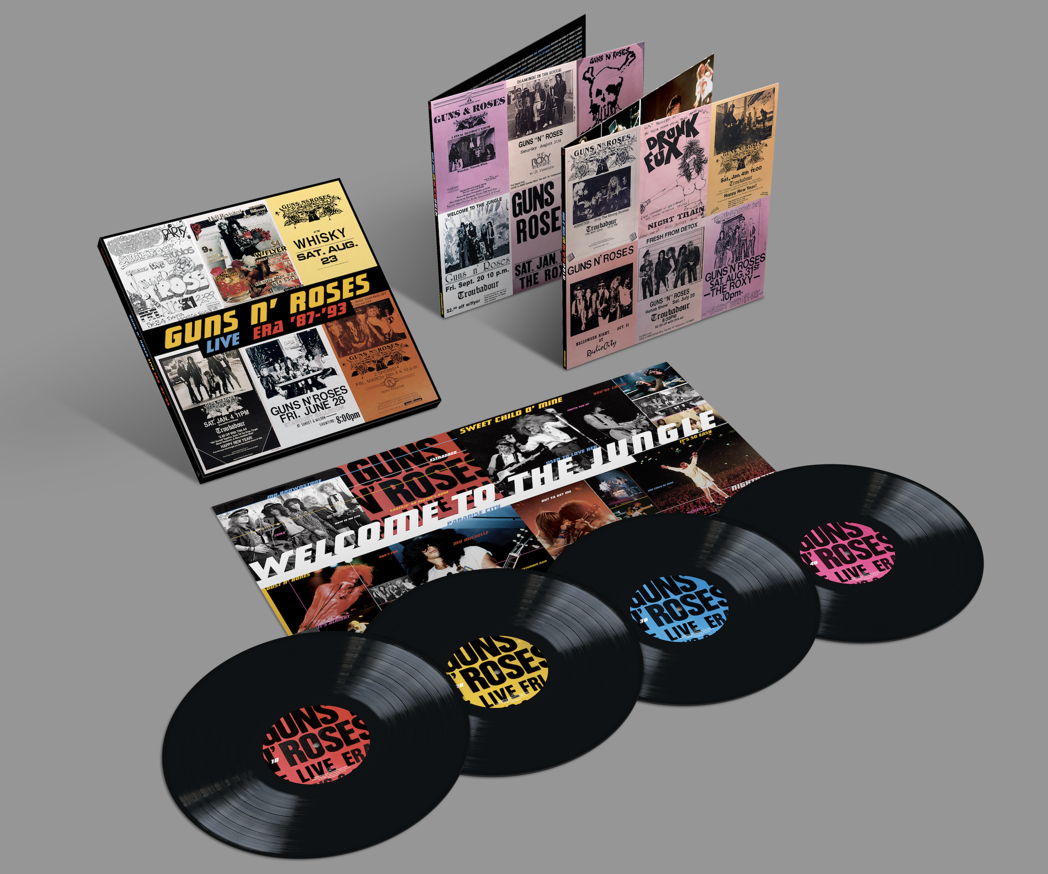 23 brani costituiscono la tracklist di Live Era 1987-1993", tra cui "November Rain", "Sweet Child O' Mine", "Welcome To The Jungle", "Don't Cry", "Paradise City", “Coma”, giusto per citare qualche titolo, registrati allora dal vivo su nastri analogici, ed ora rimasterizzati e raccolti nel boxset. Tre i formati proposti: 4LP colorati, 4LP neri 180gr e 2CD.