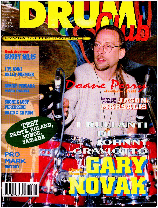 PRO-MARK HISTORY 40 anni di storia, Premier Percussion Story 75mo anniversario, BUDDY MILES Tamburi per Hendrix, JASON MARSALIS Buon sangue non mente, DOANE PERRY The creative Jethro Tull drummer, GARY NOVAK Electric Drummer, SONOR I rullanti della Designer Series, PAISTE I Nuovi Piatti 802 Series, Roland V-DRUMS TD-10