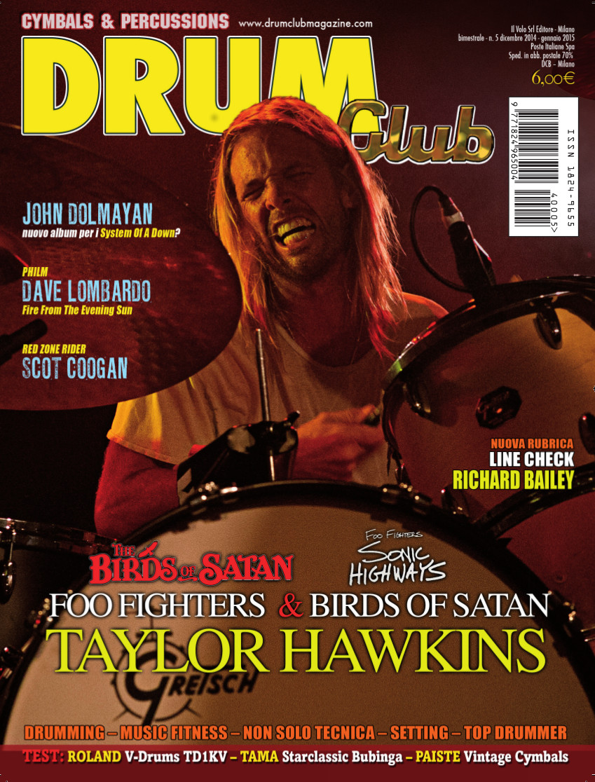 Taylor Hawkins, tutto il suo drumming nei Foo Fighters e Birds Of Satan, JOHN DOLMAYAN nuovo album per i System Of A Down? Nessuna fretta!... , PHILM DAVE LOMBARDO Fire From The Evening Sun, LINE CHECK..... RICHARD BAILEY Stevie Winwood Band, THE REV AVENGED SEVEN FOLDER , ROLAND V-Drums Series TD-1KV drumkit elettronico con pad e sensori, TAMA Starclassic Bubinga & Maple Series due drumkit per soddisfare ogni tipo di esigenza timbrica, PAISTE dai Giant Beat ai Dimensions Cymbals l’evoluzione di un trentennio...