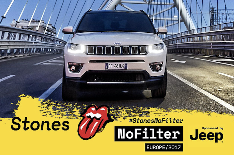 filter” sarà la nuova Compass, l’ultima nata in casa Jeep che unisce le leggendarie capacità off-road del marchio con tecnologie intuitive per la connettività e la sicurezza, il tutto “custodito” in un design distintivo e moderno. Per farla conoscere ai milioni di fan dei Rolling Stones, il brand ha predisposto diverse iniziative e un’area dedicata in occasione dei concerti, entrambe sviluppate secondo il concetto di “recalculating” reso famoso dallo spot che sta accompagnando il lancio della nuova Jeep Compass.