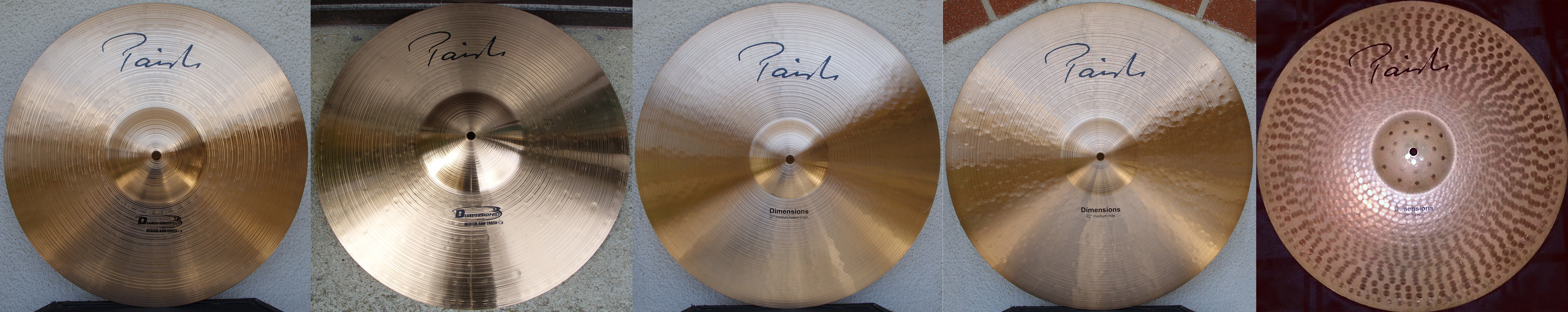 ASPETTO La linea Paiste Dimensions non riesce a sconfiggere la linea 2002 e, nel volgere di alcuni anni sparisce dal catalogo. I pezzi prodotti in quei pochi anni sono oggi ricercati dai collezionisti per diversi motivi, tra i quali il suono eccezionale di questi piatti rimasti in gran parte incompresi. Analizziamoli di seguito.