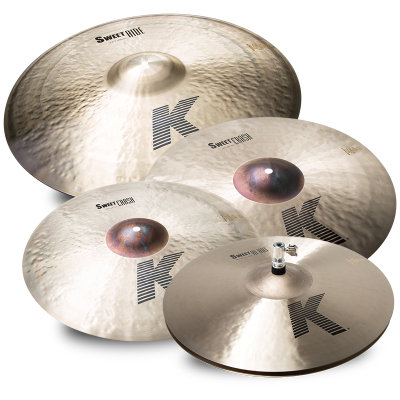 Zildjian K Sweet CollectionCrash 16”.17”.18”.19”.20 – Ride 21”.23” – Hi-Hat 15”.16” (entrambi disponibili come coppia, ma anche come singoli piatti, Top e Bottom)